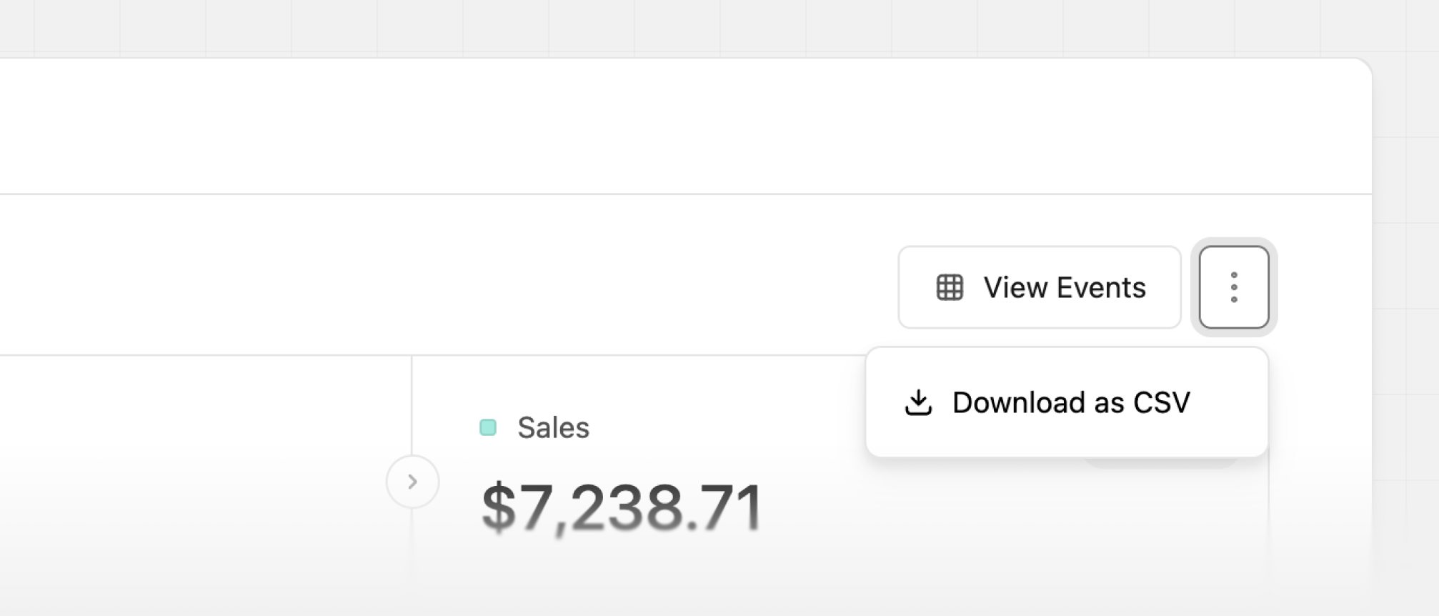 You can also export your analytics data or events stream data to a CSV file at any time. This can be useful if you want to analyze the data in a business intelligence (BI) tool, share it with your team, or import it into a spreadsheet.
