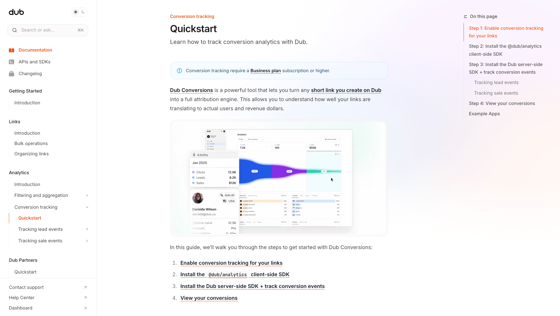 The way conversion tracking on Dub works can be boiled down to 3 simple steps:Click Event